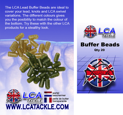 The LCA buffer beads are ideal to cover up your lead, knots and swivels. The buffer beads are available in two different colours, to match the colour of the bottom. One pack contains 20 buffer beads.