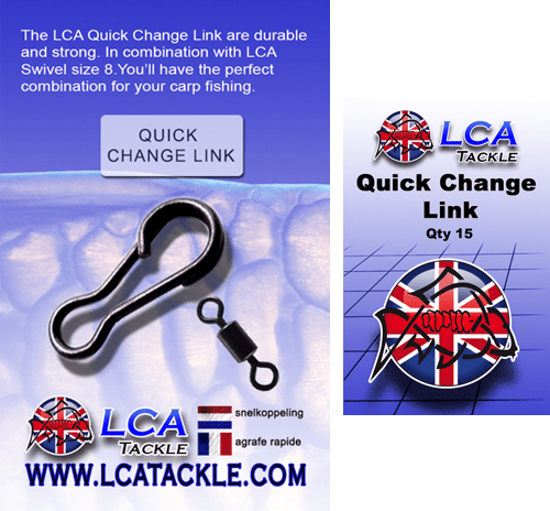 The LCA quick change link is very strong and durable. The quick change link allows you to quickly change rigs, and is easy to combine with for example the LCA swivels. The quick change links come with 15 pieces in a pack.